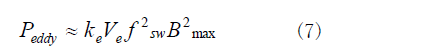 渦流損耗比磁滯損耗小得多,但隨著工作頻率的提高而迅速增加,如式(7)所示。