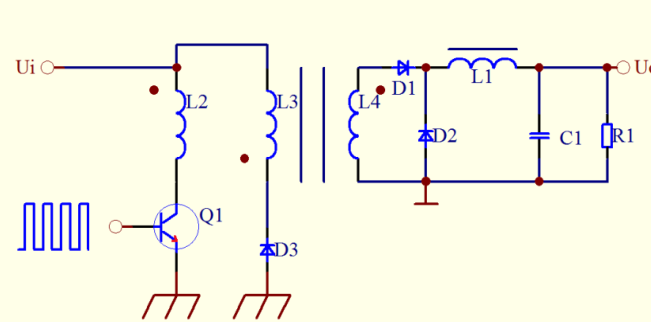這種開關電源電路,輸出功率較大(不管Q1導通與截止,都有能量傳遞到負載上)―但是存在問題是:變壓器結構雜亂,體積較大,所以其實踐使用很少。