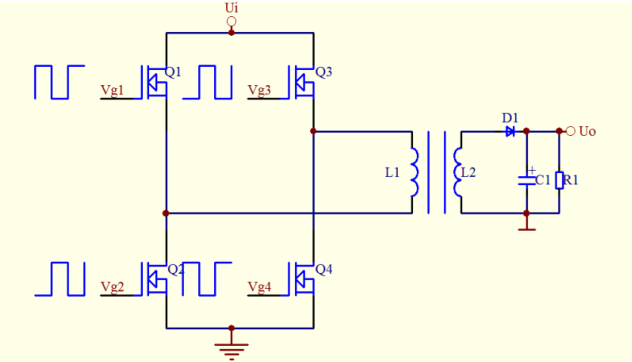 全橋式:電路由Q1、Q2、Q3、Q4組成橋式電路,如圖中所給出的信號,Q1和Q4先導通,Q2、Q3截止。電流流向:電源正→Q1→L1→Q4→電源負。后半周Q1、Q4截止,Q2、Q3導通,電流流向:電源正→Q3→L1→Q2→電源負。控制電路略微有點雜亂,需求四組不共地的驅動信號。電路不允許Q1和Q2一起導通,也不允許Q3和Q4一起導通,一起導公例意味著電源短路,Q1、Q2、Q3、Q4會炸飛的。一起假如Q1、Q4與 Q2、Q3的導通時間不對稱,那么,L1的交通電壓就會呈現(xiàn)很大的直流重量,造成磁飽滿。