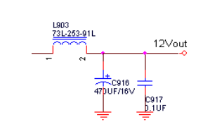 因為輸出干擾的頻譜相當(dāng)豐富,從幾十赫茲到幾十兆赫茲均含分量。因為在高頻的情況下,濾波電容等效由純電容(C)、等效串聯(lián)電阻(RES)和等效串聯(lián)電感(LES)構(gòu)成的串聯(lián)電路。在作業(yè)頻率f超過電容器的自諧振頻率fr時,電容器就起到電感的作用。值大的濾波電容對低頻干擾比較敏感,相反,值小的濾波電容吸收高頻干擾的作用比較好。因此不能光采用大電解電容濾波C916,還有必要加接自諧振頻率很高的陶瓷電容器C917。
