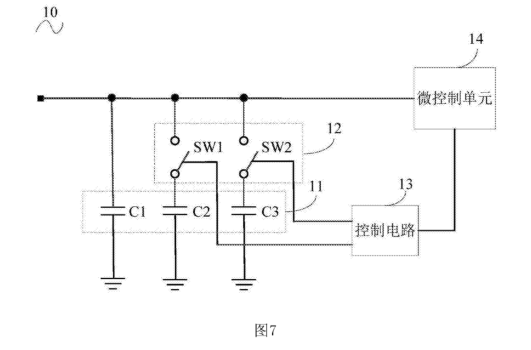 1.開關(guān)電源的起動電路包含:電容電路,電容電路的電容值可調(diào);和與電容電路銜接的調(diào)節(jié)器材,調(diào)節(jié)器材用于在開關(guān)電源上電過程中依照設(shè)定時序調(diào)整電容電路的電容值以改動起動電路的電容值。電容電路包含多個電容,多個電容并聯(lián),調(diào)節(jié)器材包含開關(guān)器材,開關(guān)器材包含與多個電容銜接的至少一個開關(guān)件,每個開關(guān)件與至少一個與電容串聯(lián)。調(diào)節(jié)器材用于調(diào)整可調(diào)電容的電容值。