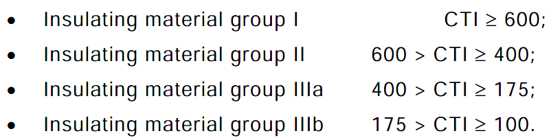 2、以變壓器設(shè)計中用到的麥拉絕緣膠帶和骨架為例,如圖12所示,可以使用較高CTI(相對起痕指數(shù))等級的絕緣材料,可以有效的滿足加強絕緣的爬電距離要求和降低發(fā)生局部放電的幾率。絕緣材料的CTI等級分類如圖13所示,CTI>600是目前最好的絕緣材料。