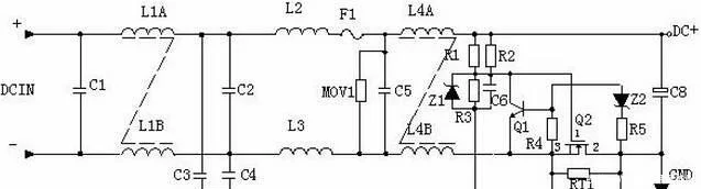 ②R1、R2、R3、Z1、C6、Q1、Z2、R4、R5、Q2、RT1、C7組成抗浪涌電路。在起機的瞬間,因為C6的存在Q2不導(dǎo)通,電流經(jīng)RT1構(gòu)成回路。當(dāng)C6上的電壓充至Z1的穩(wěn)壓值時Q2導(dǎo)通。如果C8漏電或后級電路短路現(xiàn)象,在起機的瞬間電流在RT1上發(fā)生的壓降增大,Q1導(dǎo)通使Q2沒有柵極電壓不導(dǎo)通,RT1將會在很短的時刻燒毀,以維護(hù)后級電路。