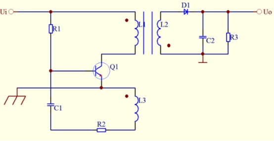 單端自激式開關(guān)電源,畫出交通通路能夠發(fā)現(xiàn)變壓器的初級(jí)兩個(gè)線圈別離接三極管的三個(gè)電極,所以又稱電感三點(diǎn)式。三極管既做開關(guān)元件又做振蕩元件,好處是不需要外加操控信號(hào),缺點(diǎn)是不穩(wěn)定,功率低下。常用于小功率開關(guān)電源,比方一些手機(jī)的充電器便是選用這種方法。此種開關(guān)電源電路的頻率取決于C1和R2的參數(shù)。