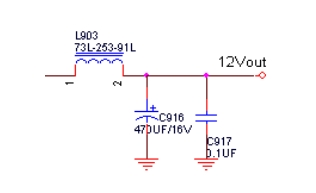 由于輸出攪擾的頻譜適當(dāng)豐厚,從幾十赫茲到幾十兆赫茲均含分量。由于在高頻的情況下,濾波電容等效由純電容(C)、等效串聯(lián)電阻(RES)和等效串聯(lián)電感(LES)構(gòu)成的串聯(lián)電路。在作業(yè)頻率f超越電容器的自諧振頻率fr時,電容器就起到電感的效果。值大的濾波電容對低頻攪擾比較靈敏,相反,值小的濾波電容吸收高頻攪擾的效果比較好。因而不能光選用大電解電容濾波C916,還有必要加接自諧振頻率很高的陶瓷電容器C917。