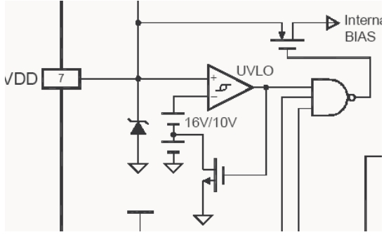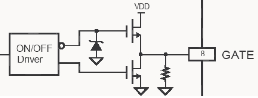 8. Gate:PWM脈沖輸出端。圖騰柱(即推拉輸出電路)輸出極驅(qū)動功率開關(guān)管。