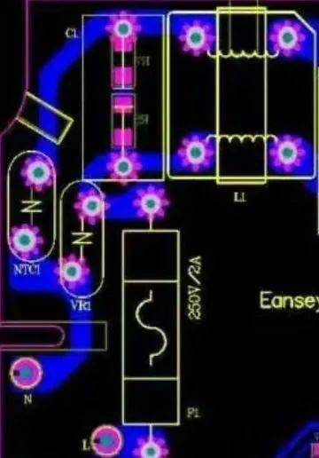 留意這兒穩(wěn)妥絲之后,接壓敏電阻VR1再接x2電容的走線,完全是繞了一個(gè)彎這是為什么?