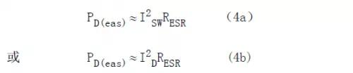 輸入輸出電容是功率開關(guān)或輸出整流器產(chǎn)生的高頻電流的唯一來歷(或貯存處),所以通過調(diào)查這些電流波形可以合理地承認流過這些電容ESR的電流。這個電流不可避免地在電容內(nèi)產(chǎn)生熱量。設(shè)計濾波電容的首要任務(wù)便是確保電容內(nèi)部發(fā)熱足夠低,以確保產(chǎn)品的壽數(shù)。式(4)給出了電容的ESR所產(chǎn)生的功率損耗的計算式。