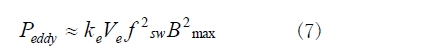 渦流損耗比磁滯損耗小得多,但跟著作業(yè)頻率的進步而敏捷添加,如式(7)所示。