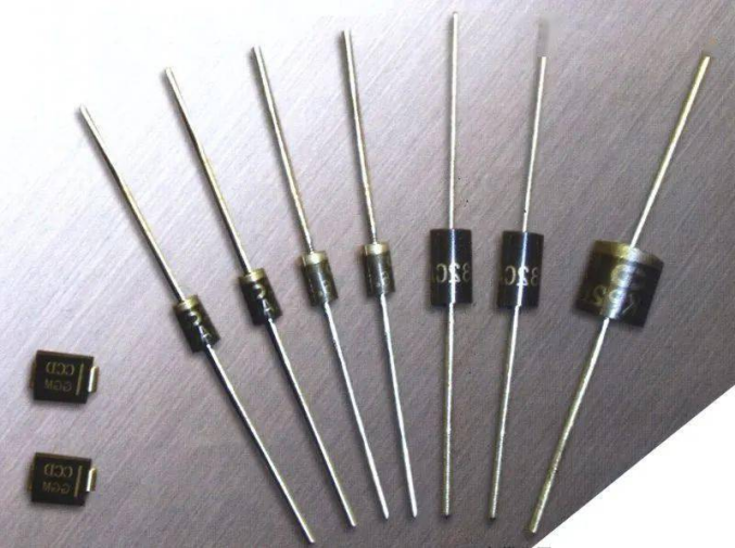 3.肖特基二極管(SBD)-全稱為肖特基勢(shì)壘二極管,它歸于低電壓、低功耗、大電流、超高速半導(dǎo)體功率器材,其反向恢復(fù)時(shí)間可小到幾納秒,正向?qū)▔航祪H為0.4V左右,整流電流可達(dá)幾十至幾百安培。特別合適做開(kāi)關(guān)電源充電器低壓輸出電路中的整流二極管、續(xù)流二極管。