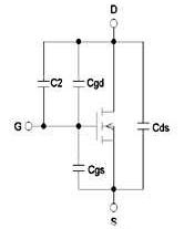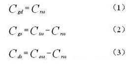 帶外接電容C2的N型MOS管極間電容等效電路MOS管的極間電容柵漏電容Cgd、柵源電容Cgs、漏源電容Cds能夠由公式確定,公式中MOS管的反應電容Crss,輸入電容Ciss和輸出電容Coss的數(shù)值在MOS管的產(chǎn)品技術手冊上能夠查到。公式如下: