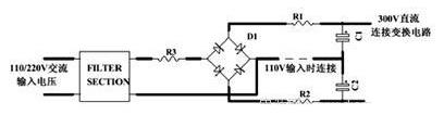 上圖所示為串聯(lián)電阻法沖擊電流操控電路(適用于橋式整流和倍壓電路,其沖擊電流相同),關于110V、220V雙電壓輸入電路,應該在R1和R2方位放兩個電阻,這樣在110V輸入銜接線銜接時和220V輸入銜接線斷開時的沖擊電流相同大。關于單輸入電壓電路,應該在R3方位放電阻。