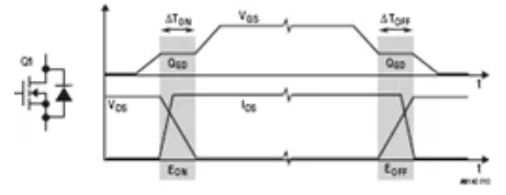 圖10.降壓轉(zhuǎn)換器中頂部FET Q1的典型開關(guān)電源波形和損耗