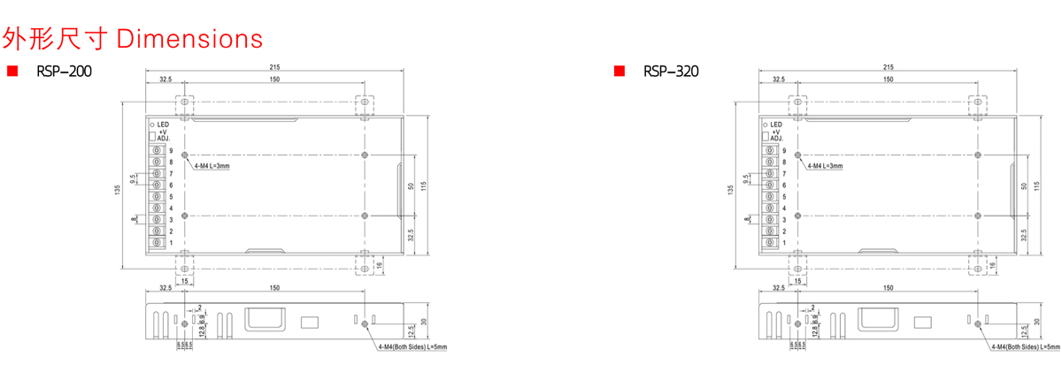 1U 低高度設(shè)計(jì)—75W~320W: 30 mm, 500W: 40.5 mm