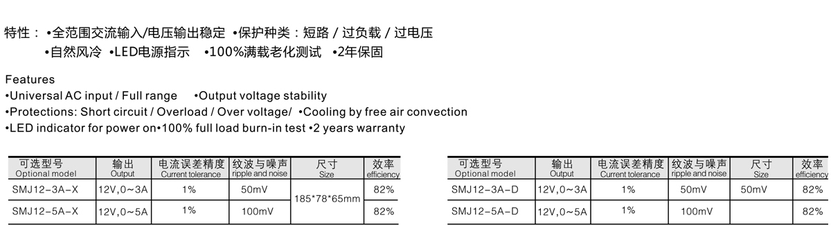 全范圍交流輸入/電壓輸出穩(wěn)定 有短路、過(guò)載、過(guò)熱保護(hù) 自然風(fēng)冷散熱 LED電源指示 100%滿負(fù)荷燒機(jī)測(cè)試
